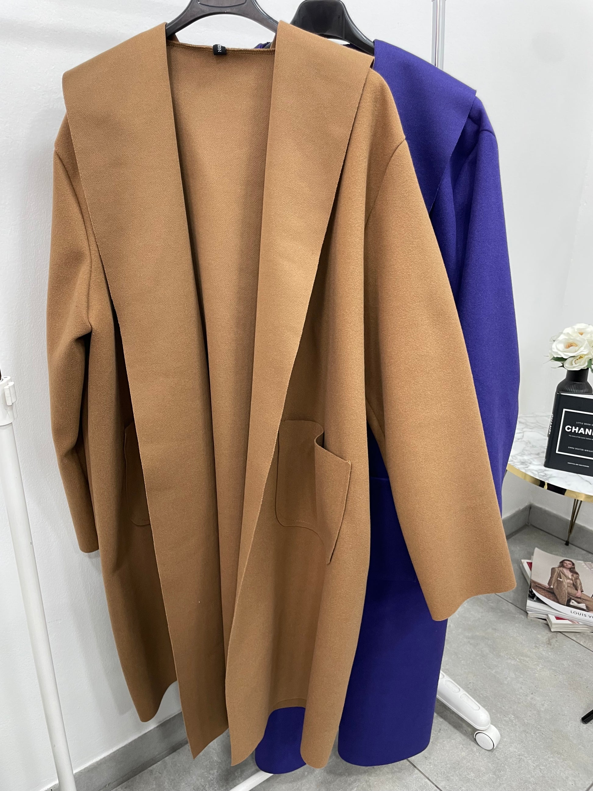Cappotto lungo con tasche e cappuccio senza cuciture per tutti i giorni.