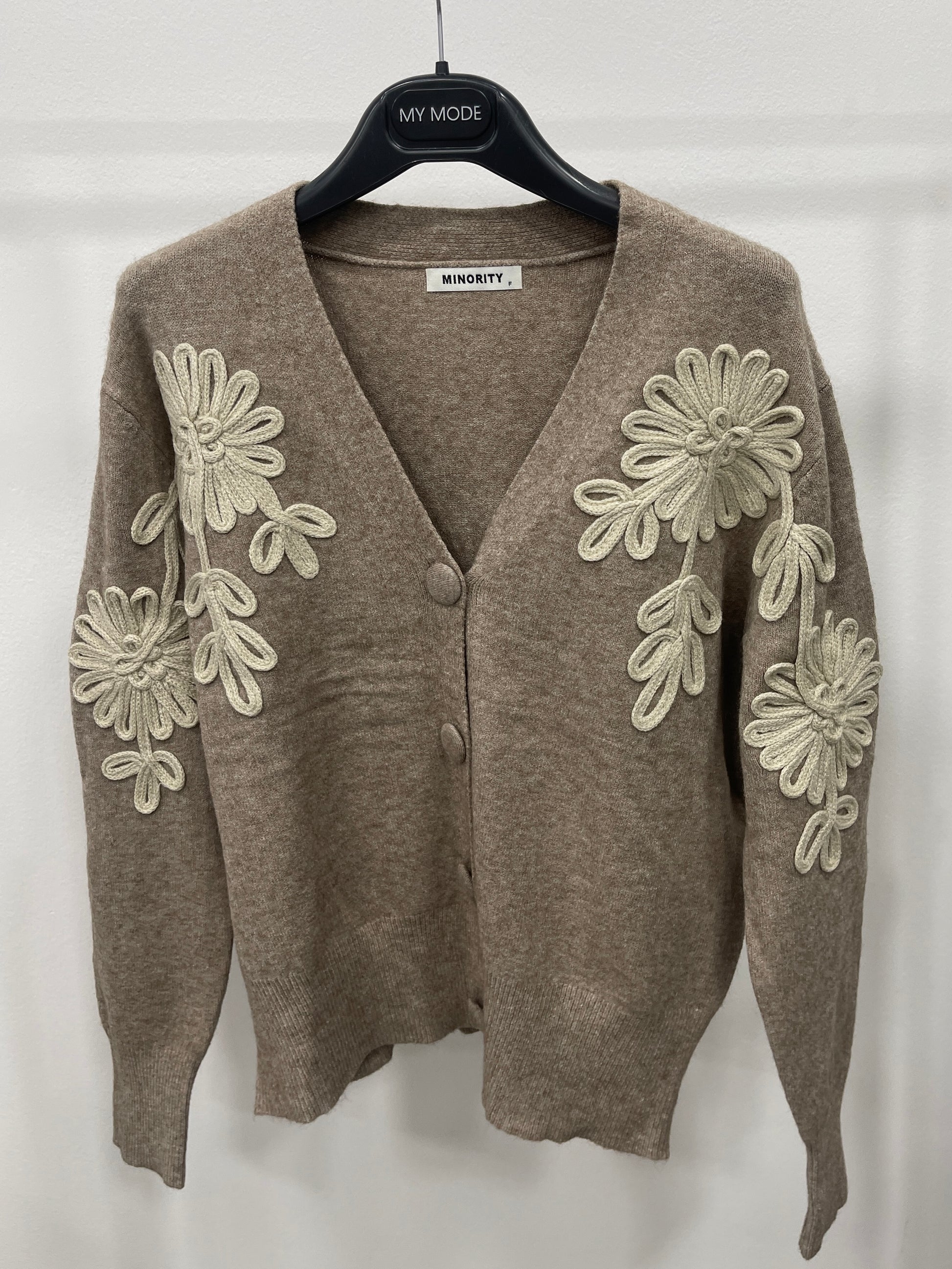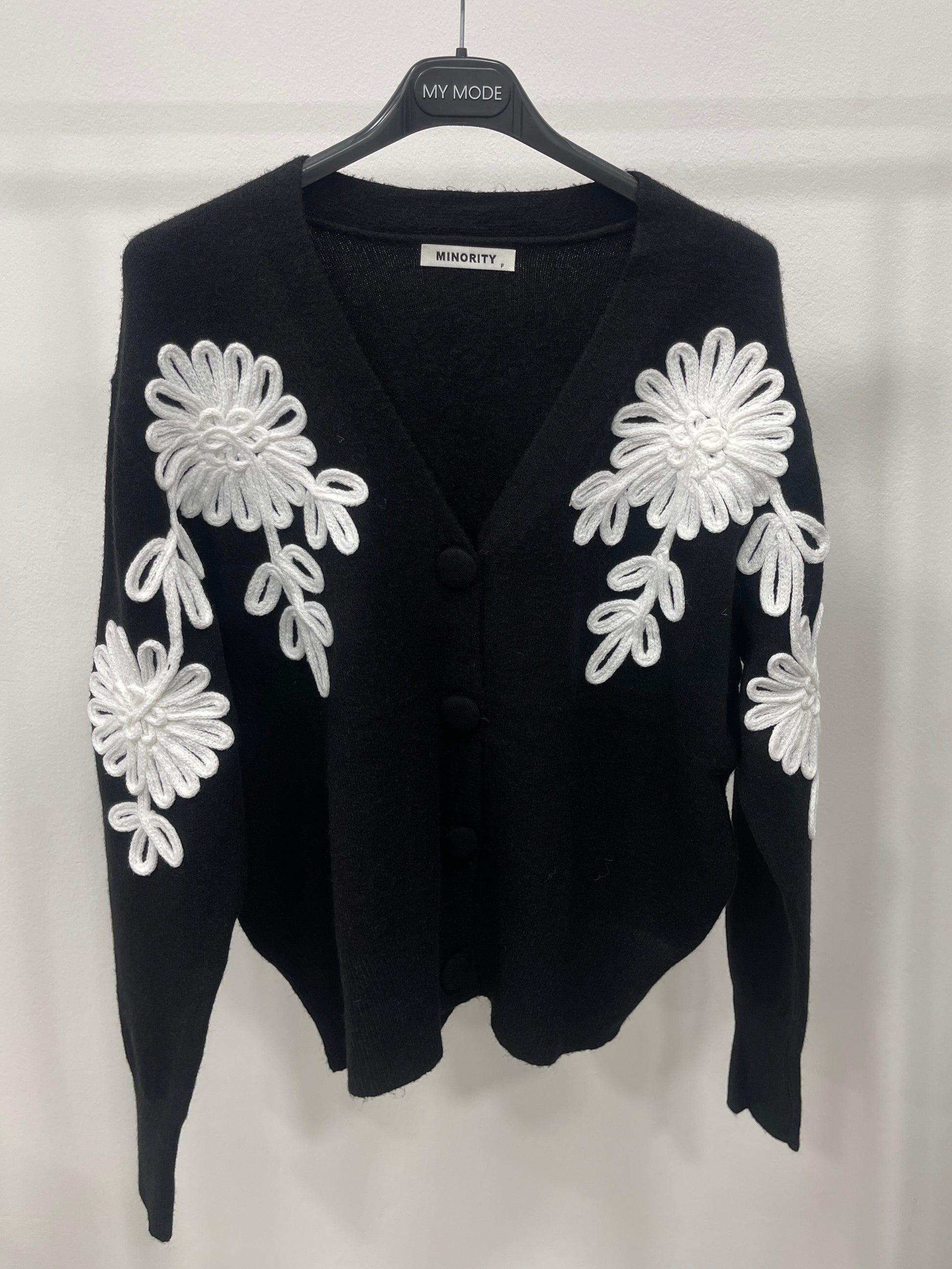 Cardigan con scollatura a V, con bottoni e ricami con fiori.