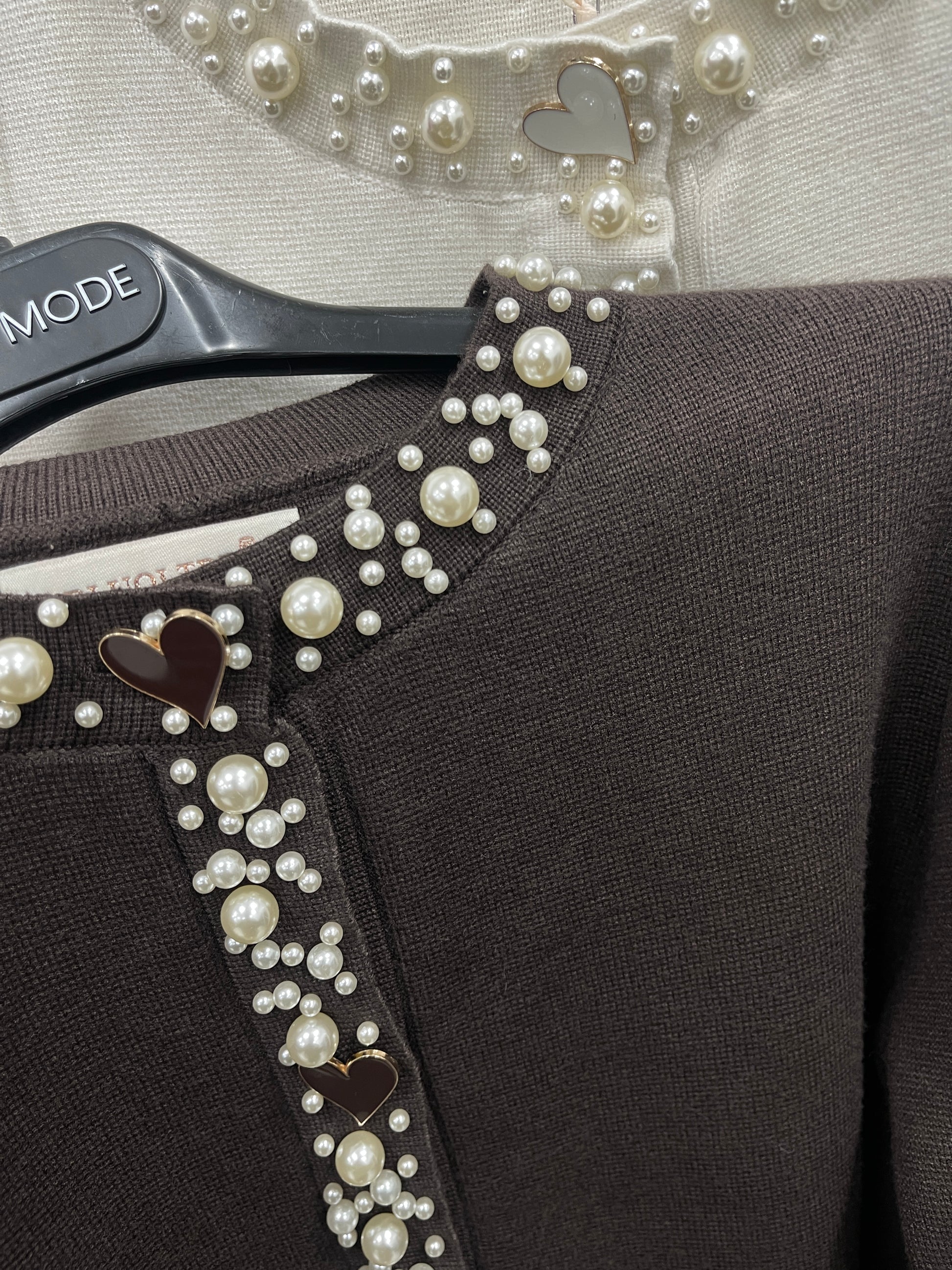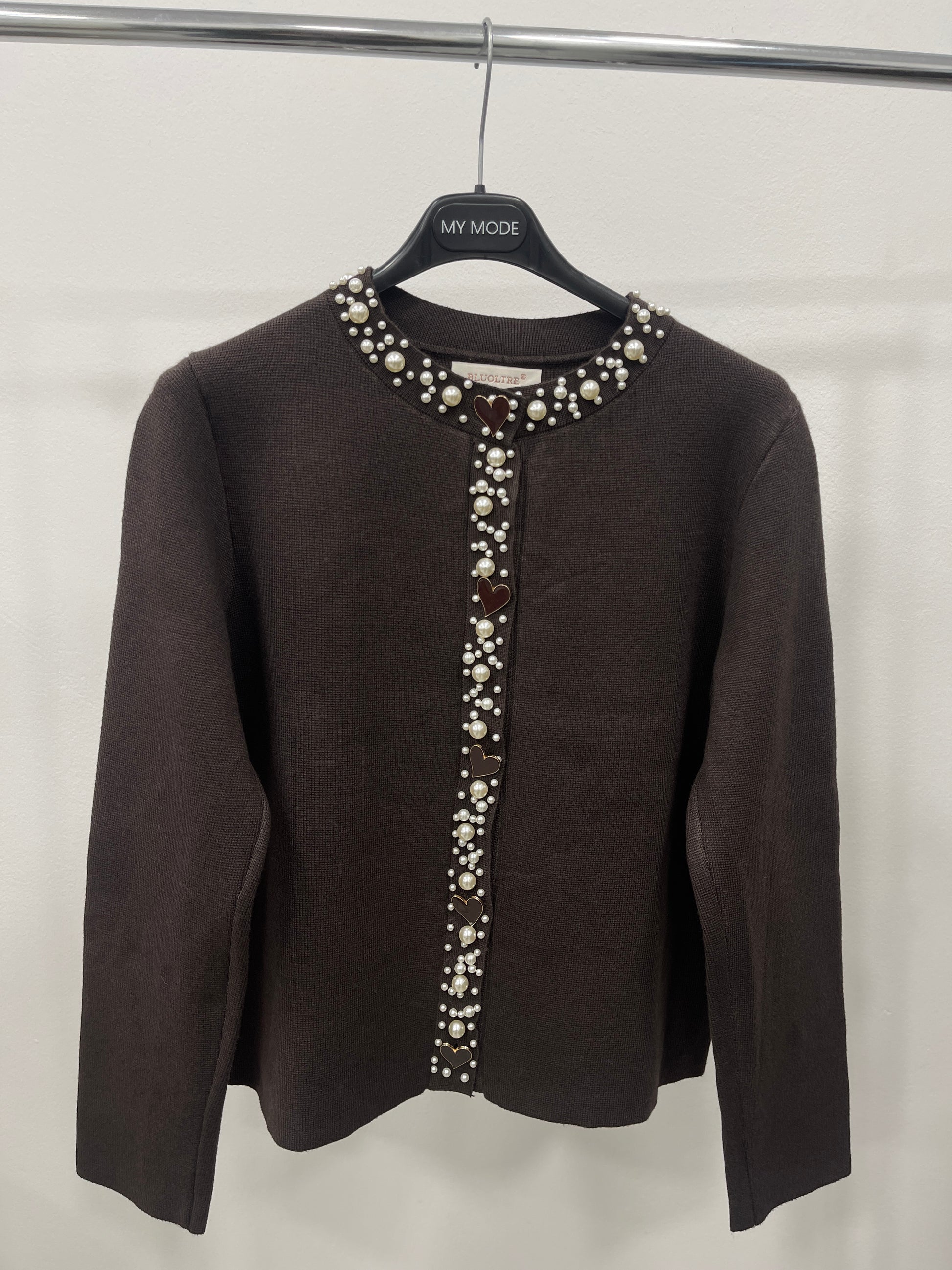 Cardigan con girocollo e dettagli in perle e bottoni a forma di cuore.