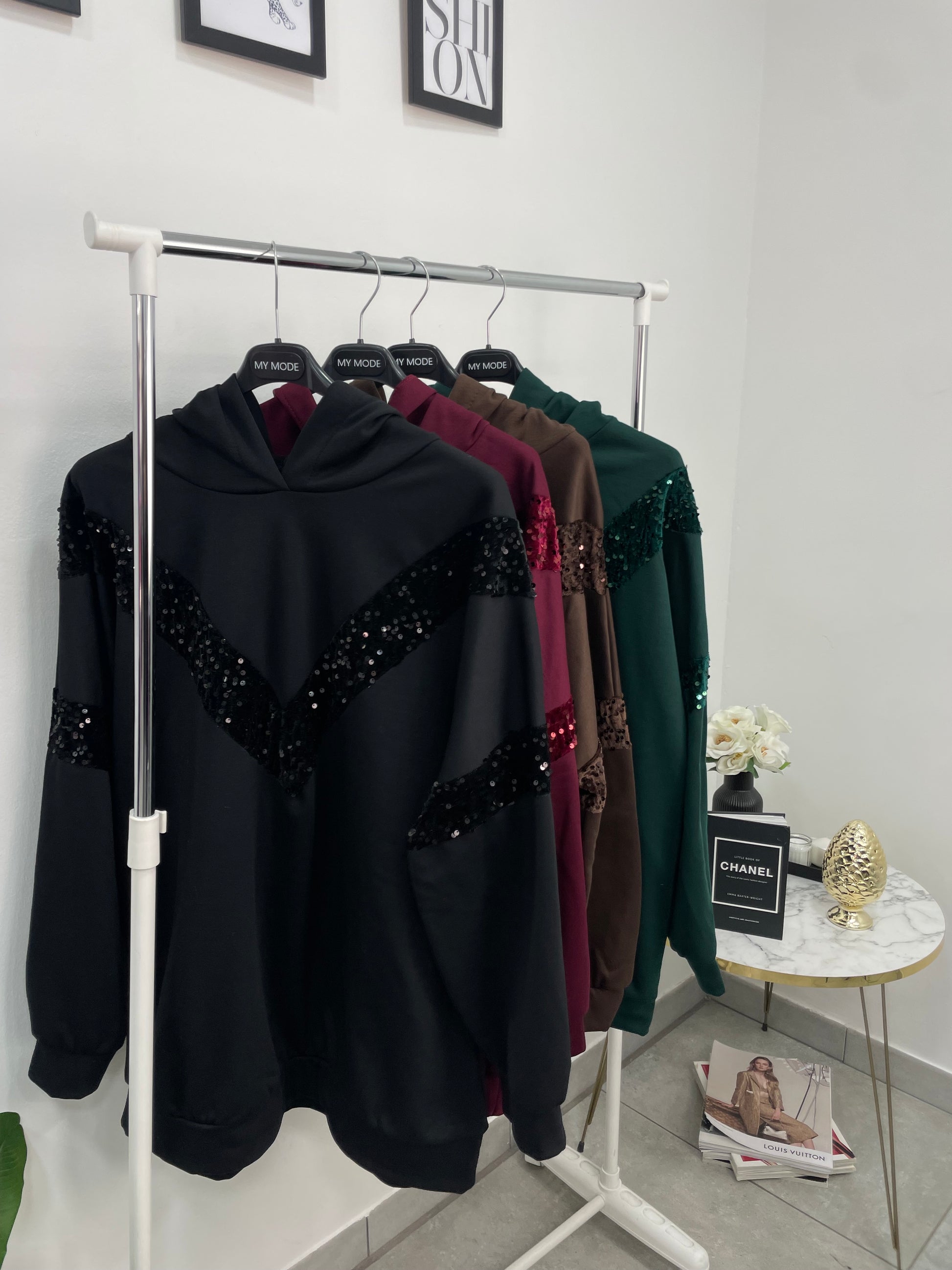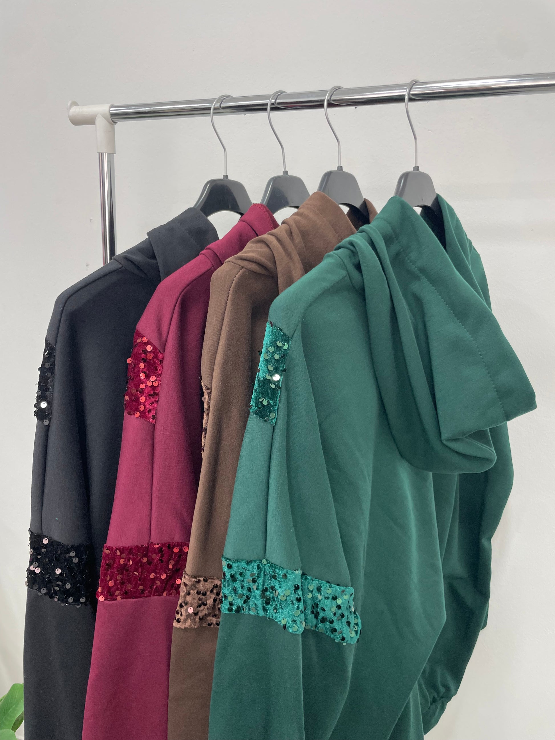 Felpa con dettagli ricoperti di paillettes, con polsini e cappuccio